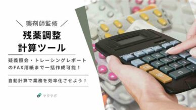 お役立ち情報 【薬剤師監修】リフィル処方箋の日数計算ツール|次回調剤予定日・調剤可能期間・有効期限が分かる! リフィル処方箋の次回調剤予定日と調剤可能期間を自動計算するツール。ワンタッチ入力や受付期間内の判定機能も搭載。薬剤師の業務効率化に役立ちます。 2026.03.09 2026.03.11 お役立ち情報